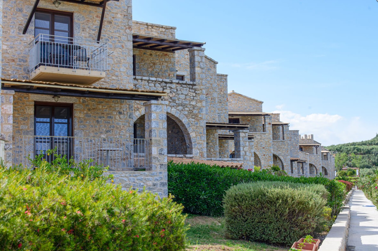 Das Hotel verfügt über insgesamt 27 Zimmer, davon 25 Doppel- und 2 Dreibettzimmer. Gestaltet im traditionellen Architekturstil der Mani-Region, überzeugen die Räume durch warme Erdtöne, ein minimalistisches Design und modernen Komfort. Je nach Lage bieten sie einen herrlichen Blick auf das Meer oder den Garten.