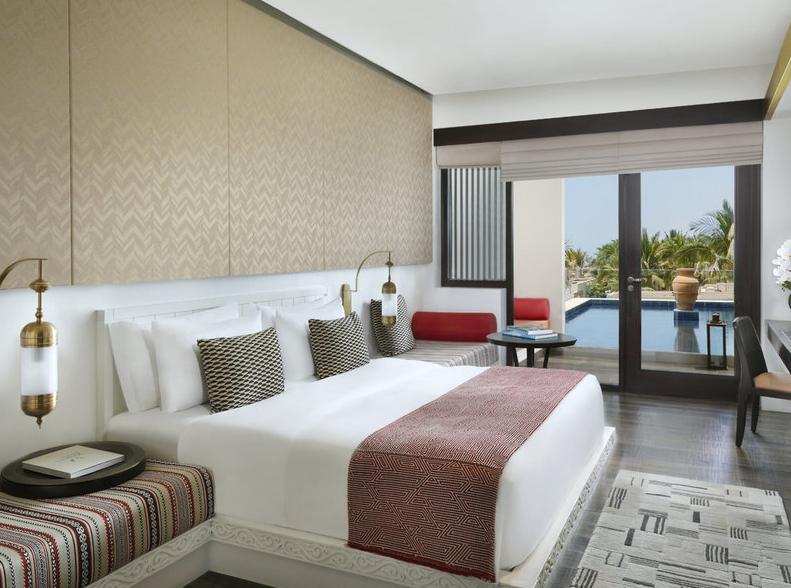 Das kulturelle Erbe und die landschaftliche Schönheit Omans finden in diesem Resort den perfekten Ausdruck. Umgeben von Palmen, plätschernden Wasserwegen und direkt an einem feinsandigen, privaten Strandabschnitt gelegen, bietet dir dieses Domizil luxuriösen Komfort und stilvolle Entspannung. Genieße die idyllische Lage, den Infinitypool und die Ruhe fernab vom Trubel – ein perfekter Rückzugsort für romantische Tage zu zweit.