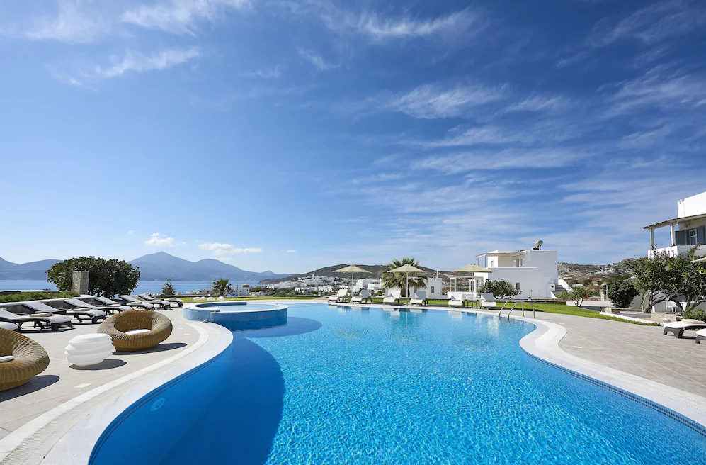 Elegante Suites mit Blick auf die Ägäis, Spa-Bereich, Pool und zentrale Lage für Inselerkundungen.