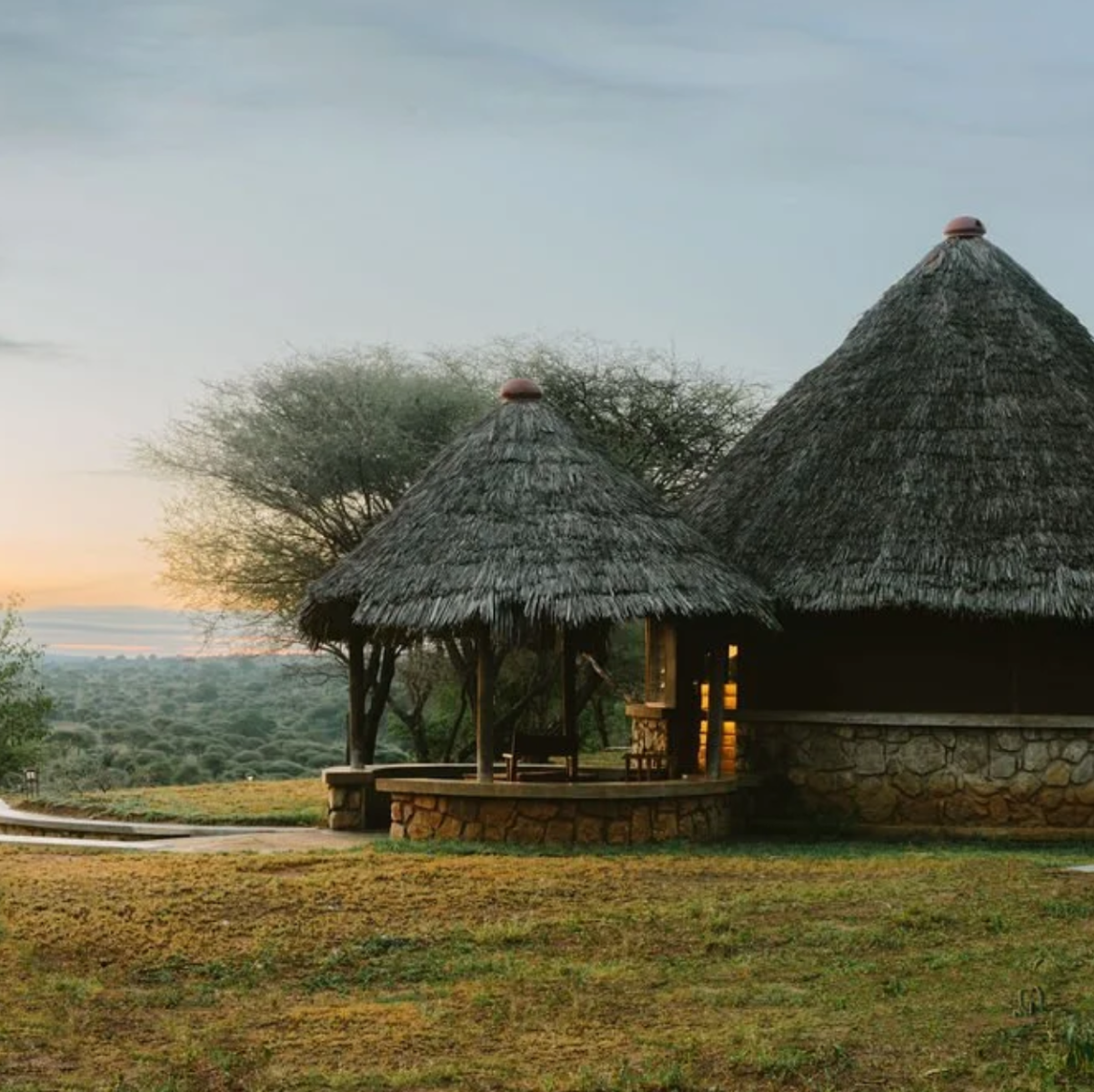 Die Lodge ist im Stil eines traditionellen afrikanischen Dorfes erbaut und fügt sich harmonisch in die Landschaft ein. Die rund angelegten, strohgedeckten Steinhäuser verteilen sich über den Hügel und bieten maximale Privatsphäre sowie spektakuläre Ausblicke – besonders bei Sonnenauf- und -untergang.